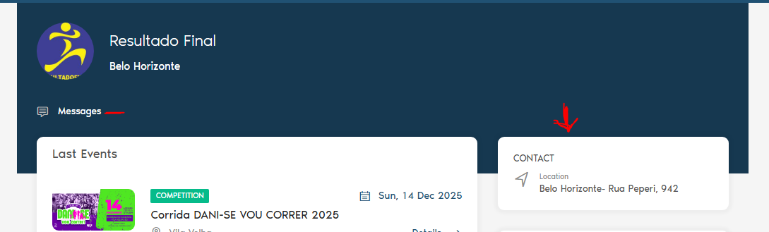 You can find the event organizer's details by going to the event itself within the platform and clicking on the organizer's name: