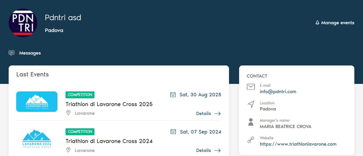 You can find the details of the organizers on the page of your event, as shown in the following example (in this case the organizers is called "Pdntri asd"):