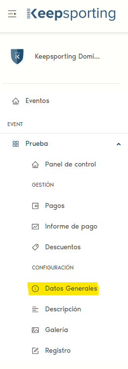 Luego ve al DASHBOARD de tu evento y haz clic en DATOS GENERALES.
