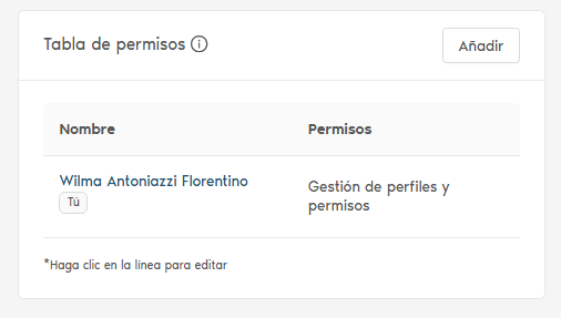 Ve a la 'Tabla de permisos' y haz clic en 'Añadir':