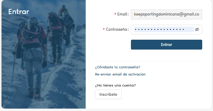 5) ¡Listo! ¡Ahora puedes ir a la página de inicio de sesión, introducir tu correo electrónico y contraseña, y acceder a Keepsporting