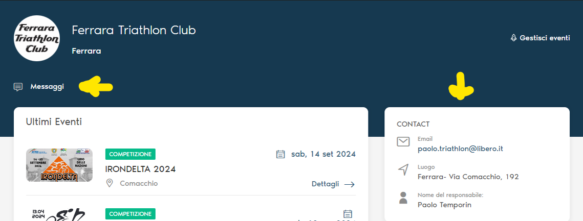 Puoi trovare i dati dell'organizzatore dell'evento andando sull'evento stesso all'interno della piattaforma e cliccando sul nome dell'organizzatore: