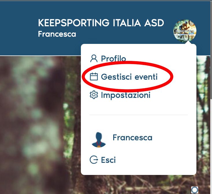 La prima azione da fare è andare alla sezione "Gestisci eventi".