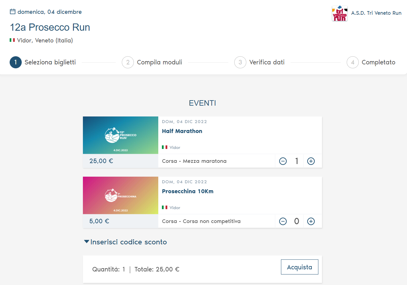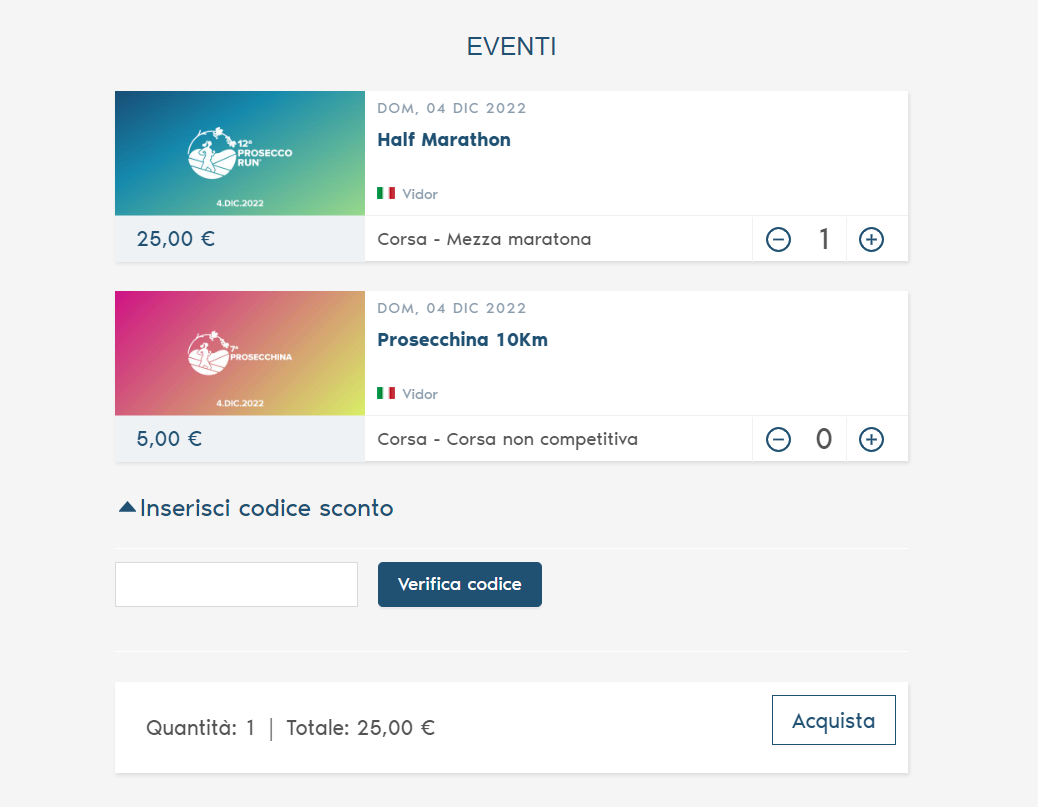 Come iscriversi con un codice sconto ad un evento su Keepsporting