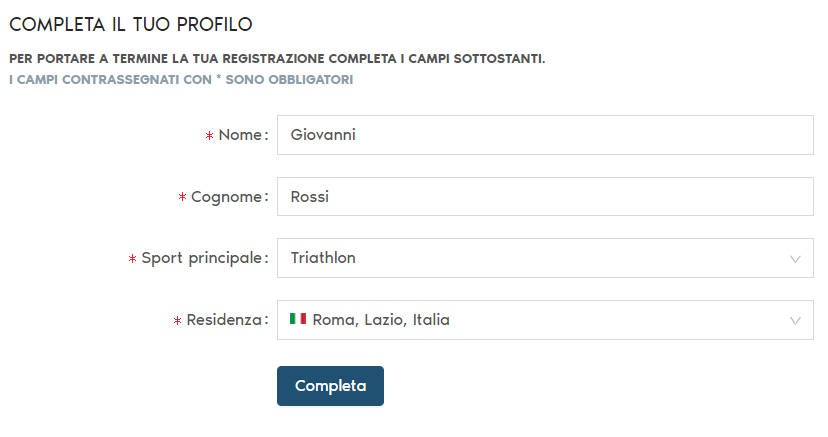 4) Clicca su "Completa profilo", inserisci i tuoi dati e clicca su "Completa".