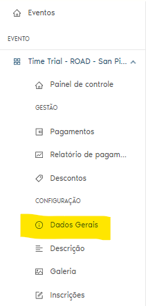 Em seguida, acesse o PAINEL DE CONTROLE do seu evento e clique em DADOS GERAIS.