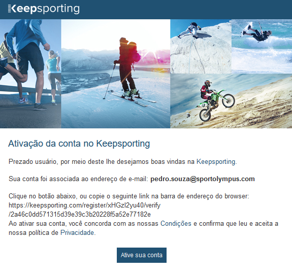 Olá! Ao registar-se na Keepsporting terá a possibilidade de manter os seus dados armazenados para as inscrições aos eventos, poderá consultar todos os registos que fez e poderá criar e gerir as páginas das suas organizações desportivas.