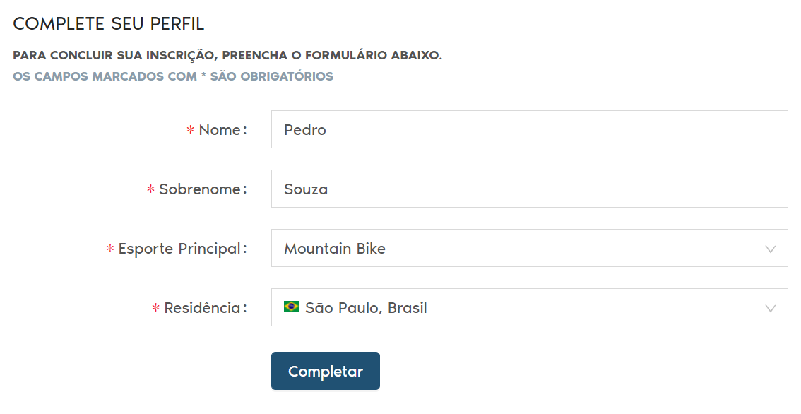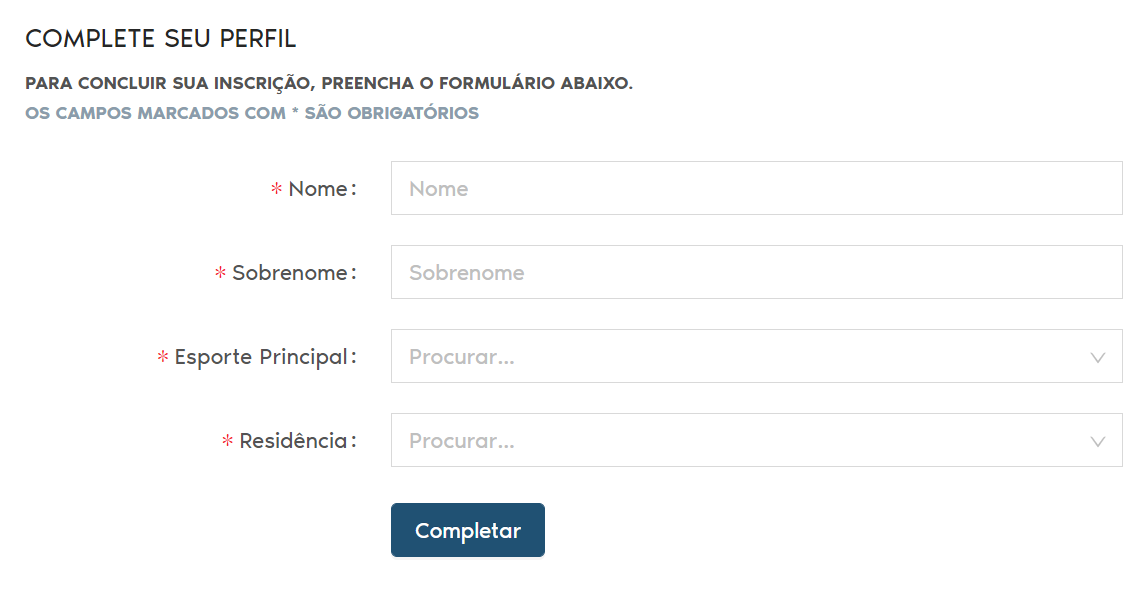 4) Clique em "Complete seu perfil", insira seus dados e clique em "Completar".