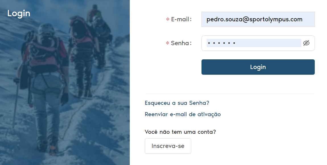 5) Pronto!! Agora você pode ir para a página de login, digitar seu e-mail e senha e entrar na Keepsportig!