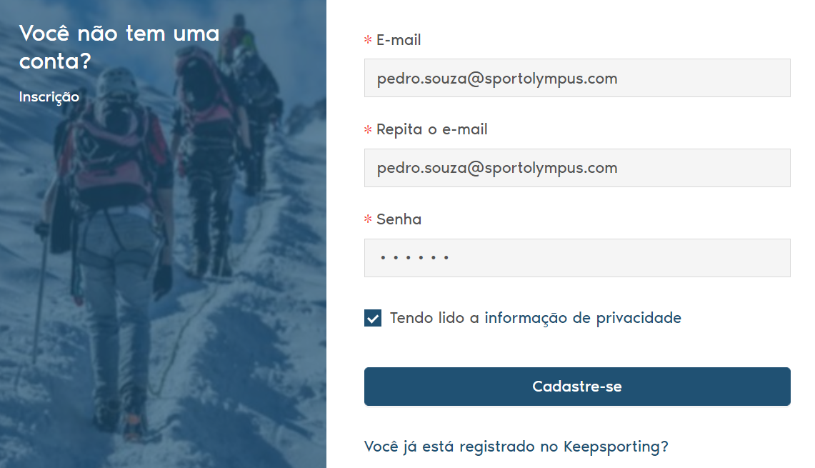 Veja como se registrar na Keepsporting em algumas etapas simples: