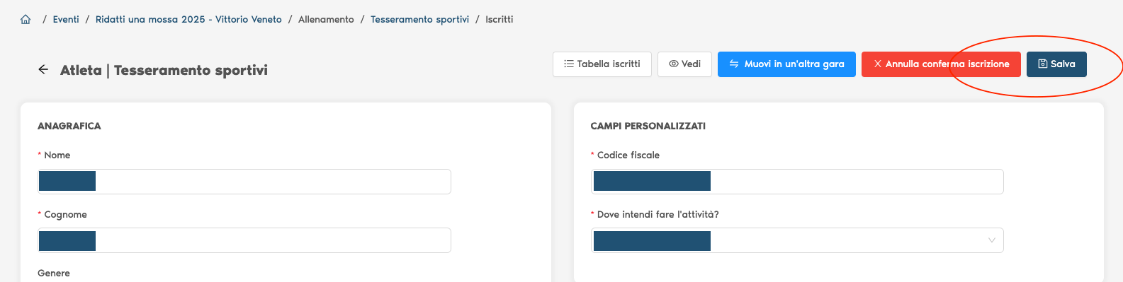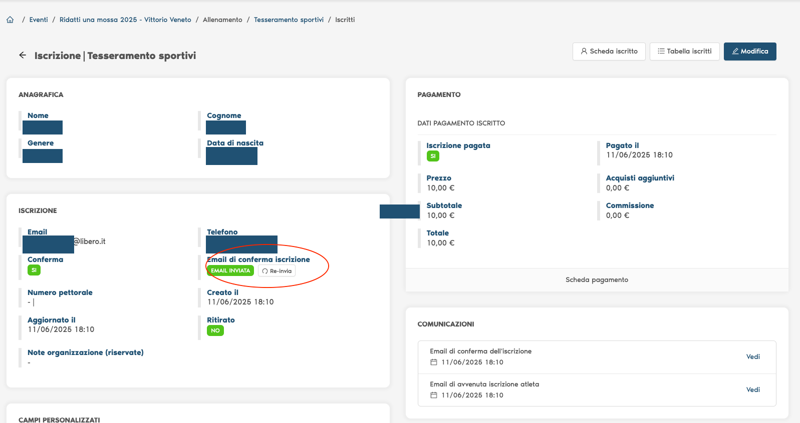 Se necessário, pode também reenviar a inscrição atualizada ao atleta utilizando o botão específico presente na ficha.