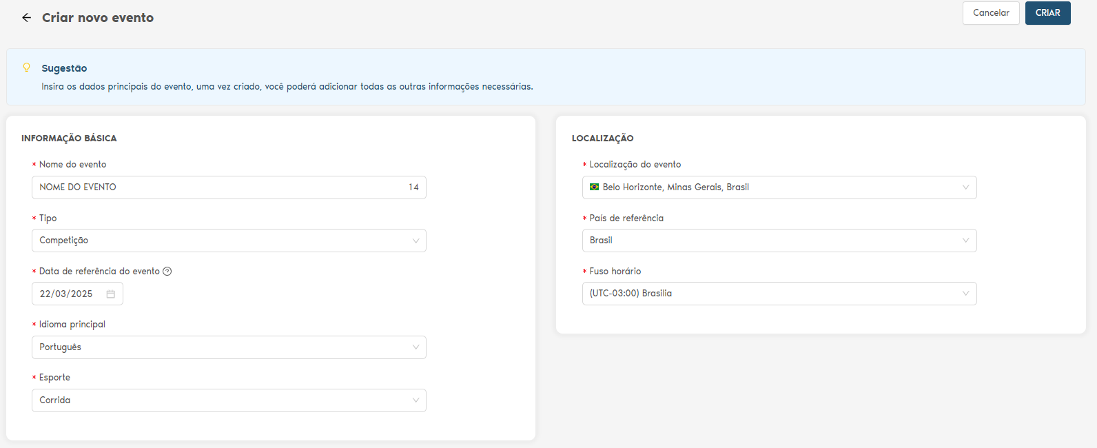 QUAIS INFORMAÇÕES PRECISAMOS PARA CRIAR A BASE DE UM EVENTO?