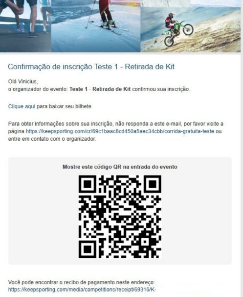 O atleta deve guardar este e-mail para apresentar o QRCODE no evento para facilitar o check-in e retirada de kit.
