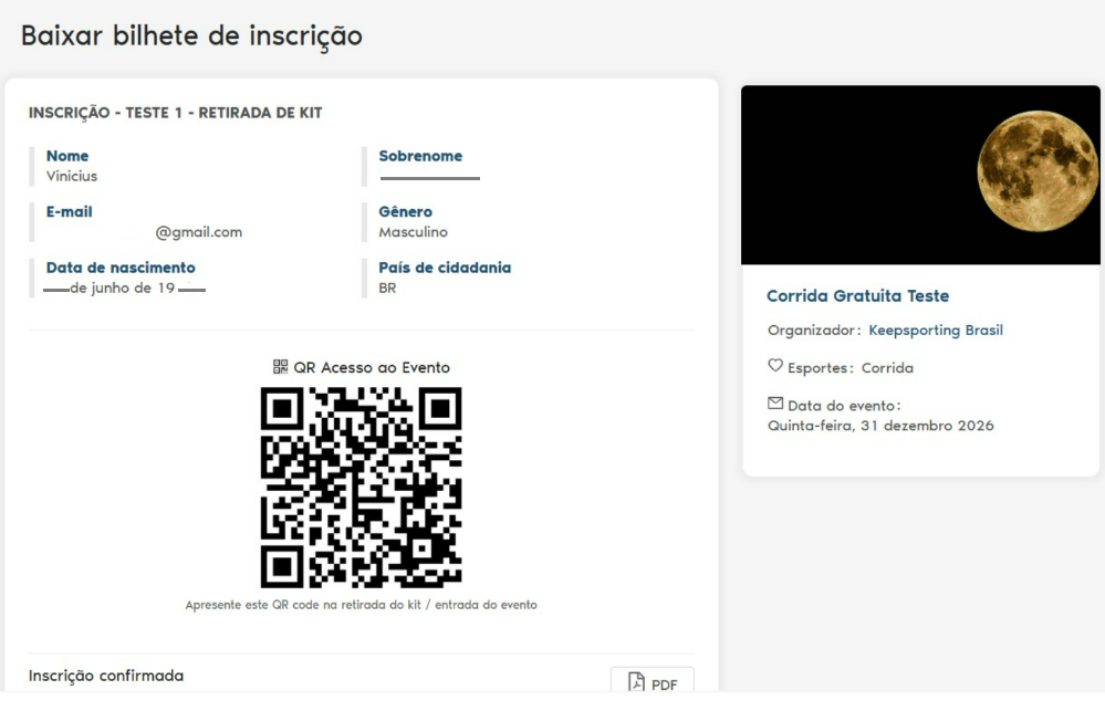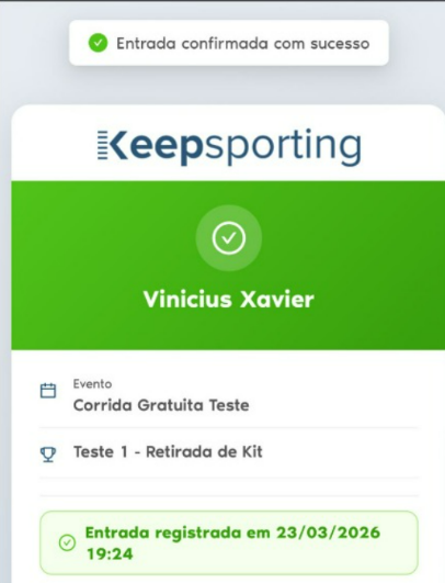 O uso da leitura do QR Code no check-in também reforça a segurança do evento. Cada inscrição possui um código único, que ao ser escaneado na Keepsporting é validado automaticamente, impedindo reutilizações ou tentativas de fraude.