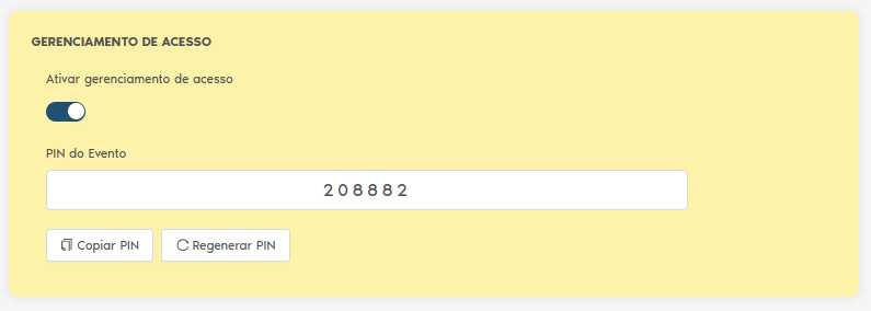 - Automaticamente será criado um PIN do evento, copie/anote este PIN que será usado para realizar o check-in dos atletas do evento.
